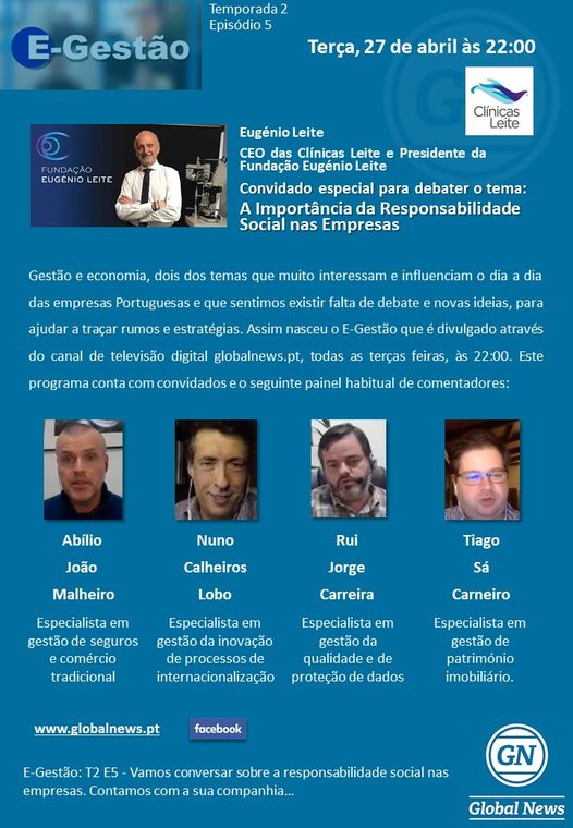 Já a seguir, pelas 22h, acompanhe a entrevista do Prof. Doutor Eugénio Leite à Globalnews.pt sobre a Importância da Responsabilidade Social nas empresas.